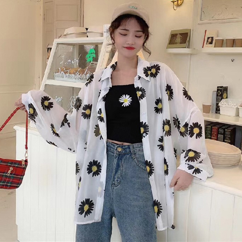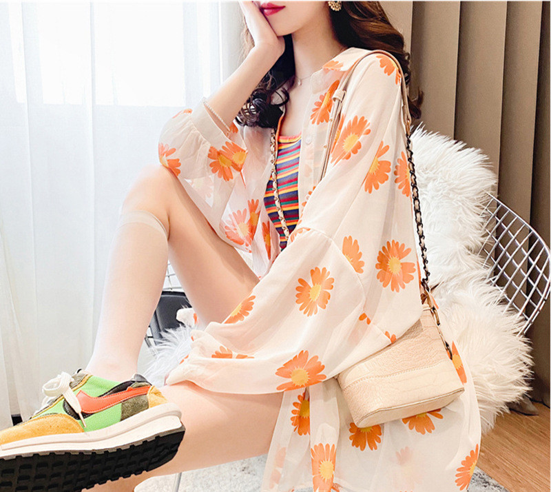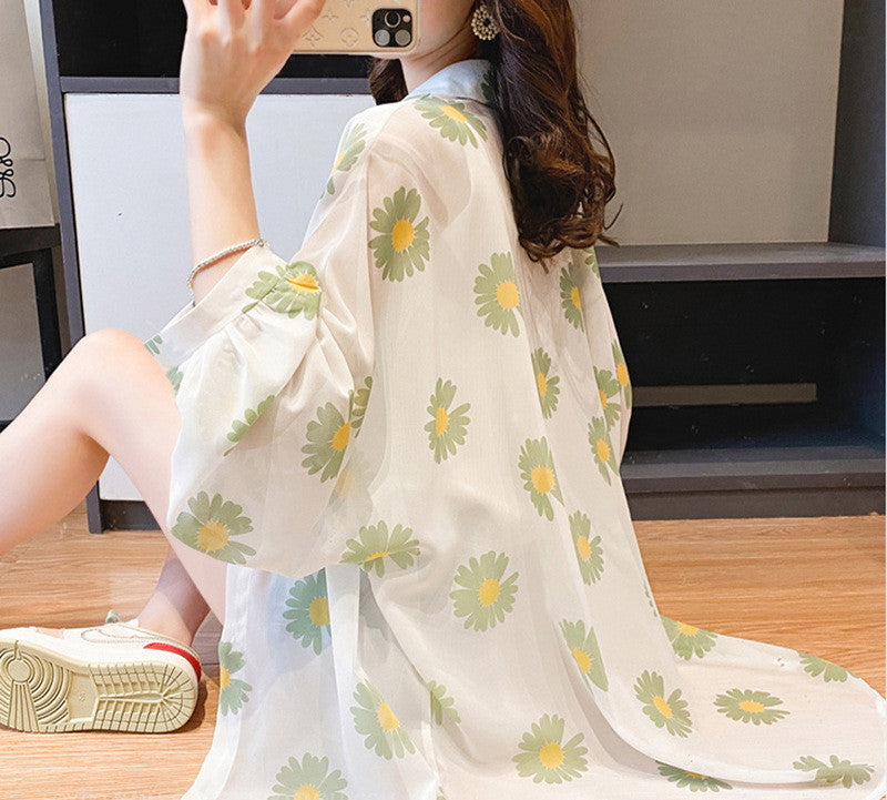 Little Daisy Net Red Sunscreen Clothes Women Loose Loose Outside Sunscreen Mid-length Chiffon Shirt Thin Cardigan